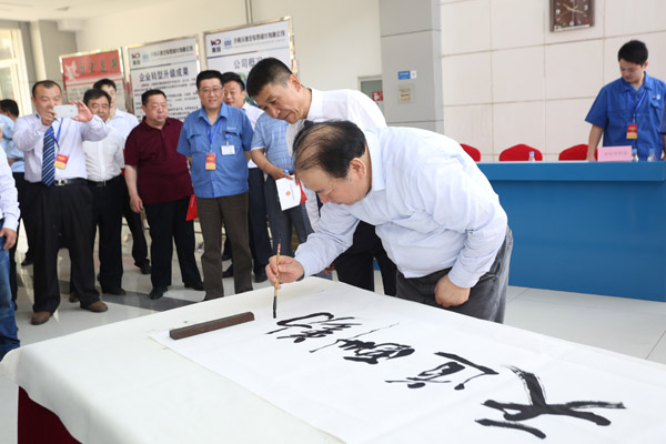 馬純濟(jì)書記與李松巖總經(jīng)理為濟(jì)南沃德六十周年紀(jì)念寶鼎揭幕(寶鼎由萬得集團(tuán)贈(zèng)送,集團(tuán)創(chuàng)始人趙清潔親筆題字:“業(yè)立沃德愛回家”)