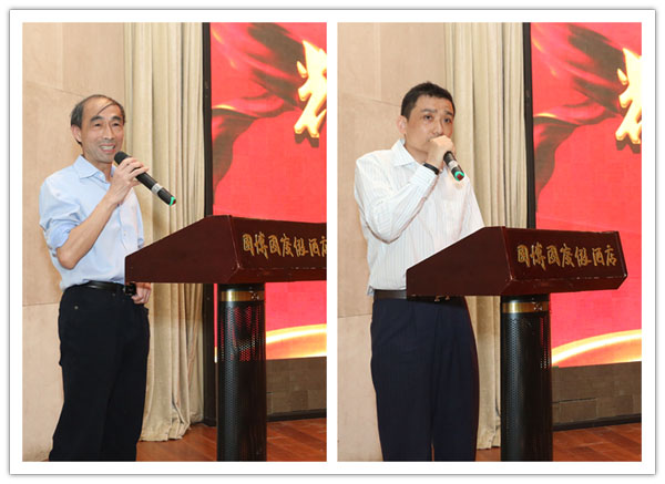 沈陽沃德總經(jīng)理于繼平(圖左)用歌聲祝福、濟(jì)南沃德勞模代表(圖右)發(fā)言