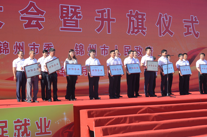 6月24日上午,錦州市在市府廣場隆重舉行2015年度功勛企業表彰大會暨升旗儀式。