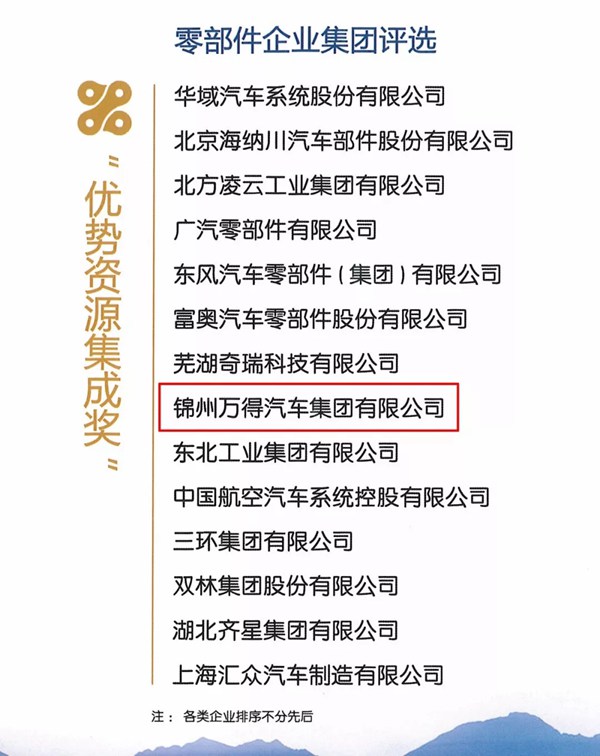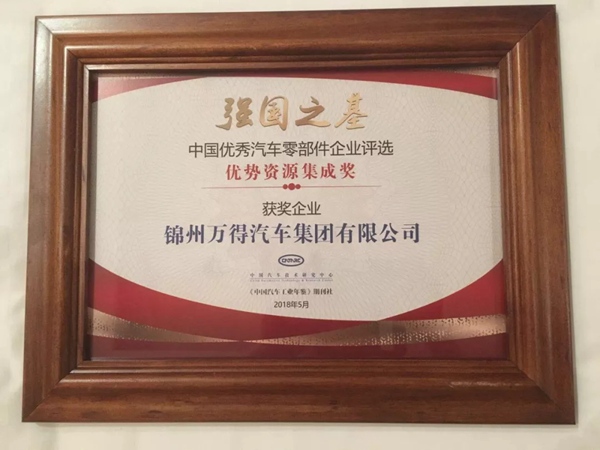 5月30日,《中國汽車零部件產(chǎn)業(yè)發(fā)展研究》成果發(fā)布會暨“強國之基—中國優(yōu)秀汽車零部件企業(yè)”頒獎典禮在西安舉行,會上根據(jù)國內汽車零部件行業(yè)企業(yè)發(fā)展特點將8個細分產(chǎn)業(yè)類型劃分為10個獎項,揭曉了汽車零部件產(chǎn)業(yè)優(yōu)秀企業(yè)名單。萬得集團作為國內汽車零部件一線品牌,融合優(yōu)勢資源,突破傳統(tǒng)細分產(chǎn)業(yè)界限,拓展上下游全產(chǎn)業(yè)鏈條,全面開展零部件平臺化建設,促進零部件產(chǎn)業(yè)持續(xù)縱深發(fā)展,一舉榮獲汽車零部件“優(yōu)勢資源集成獎”。