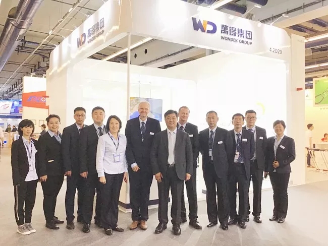 展會期間,中國駐德國大使館參贊王衛東、中國機電產品進出口商會會長張鈺晶蒞臨展位,聽取了集團國際業務總監江華及萬得歐洲研發中心總經理Schriek關于集團情況及未來規劃的介紹,并對集團的未來國際戰略布局表達了肯定和希望。